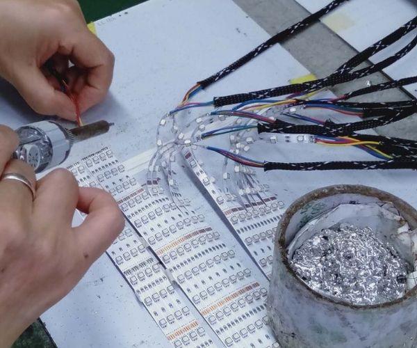 Solder the 2.1 mm input socket cable onto the LED strip light and switch the power on.
